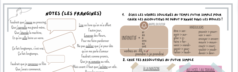 CHANSON : NOTES (LES FRANGINES) + FUTUR SIMPLE